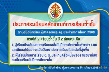 ประกาศ ระเบียบหลักเกณฑ์การเรียนเรียนซ้ำชั้น ปีการศึกษา […]