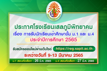 การรับนักเรียนเข้าศึกษาชั้นมัธยมศึกษาปีที่ 1 และชั้นมัธยมศึกษาปีที่ 4 (ประเภท ห้องเรียนทั่วไป) ประจำปีการศึกษา 2565